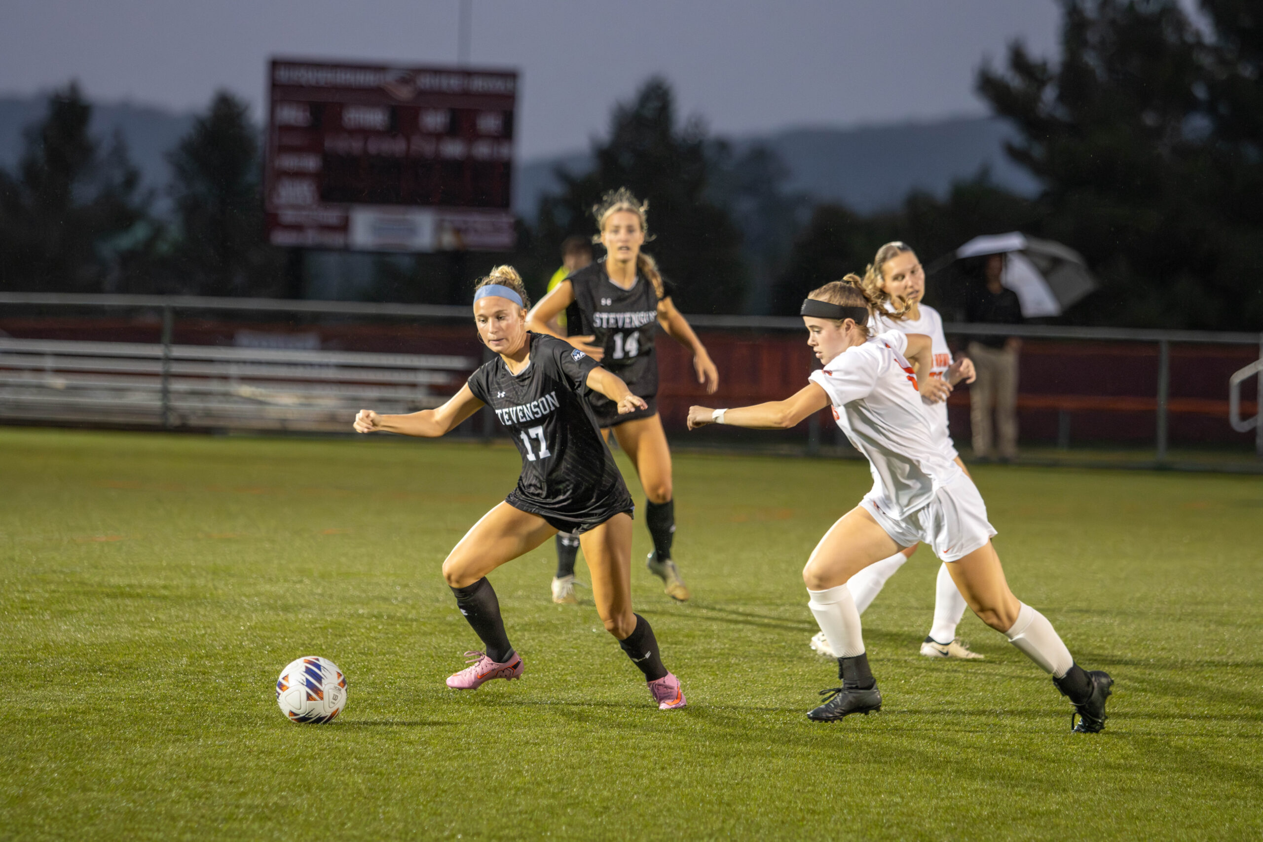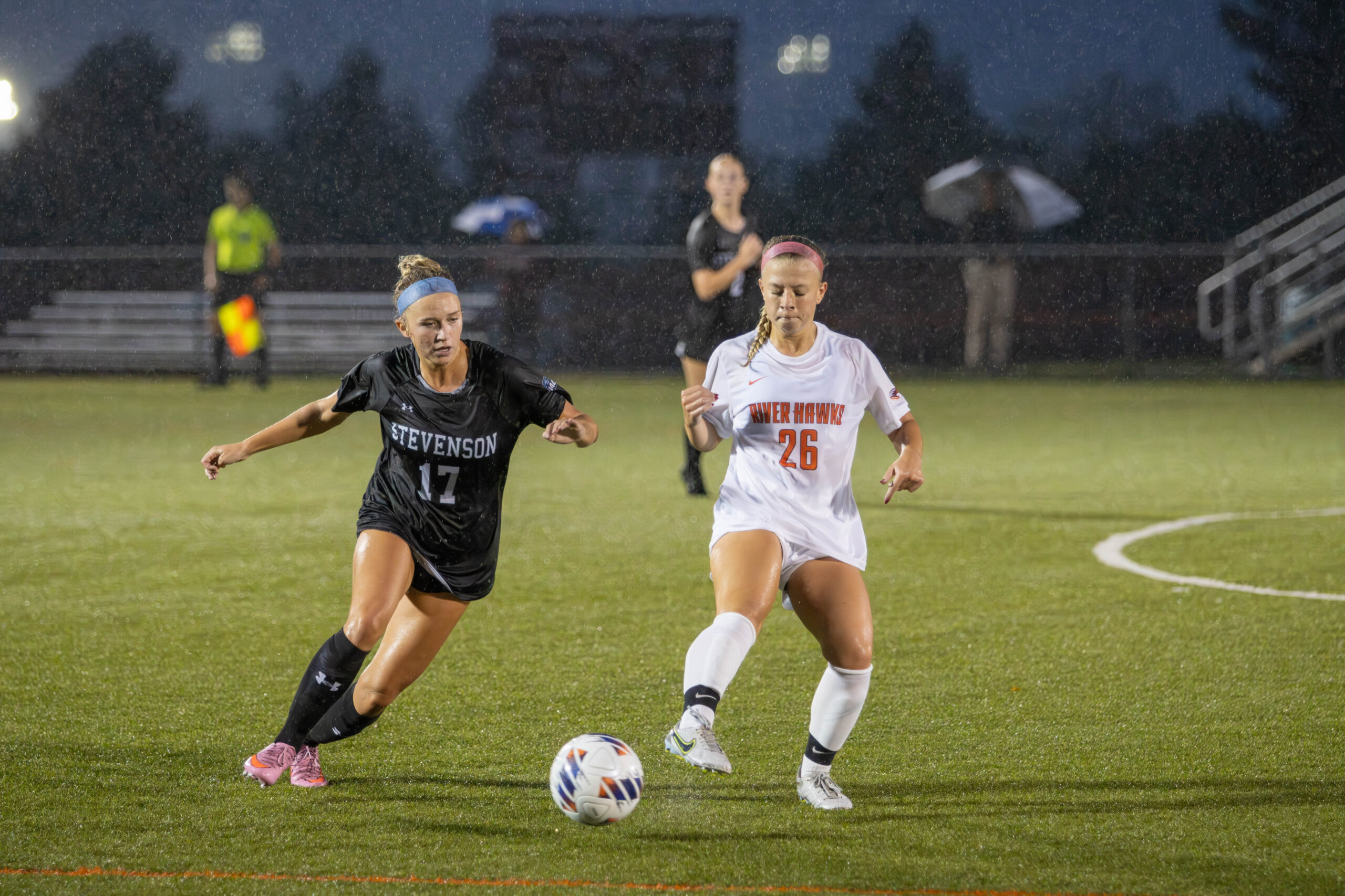 The first half spelled out utter dominance from the River Hawks (5-4), outshooting Stevenson 17-1. Stevenson (3-2-3) would only grow into the game as the rain would subside, attempting multiple breakaways only to be thwarted by brilliant defense.