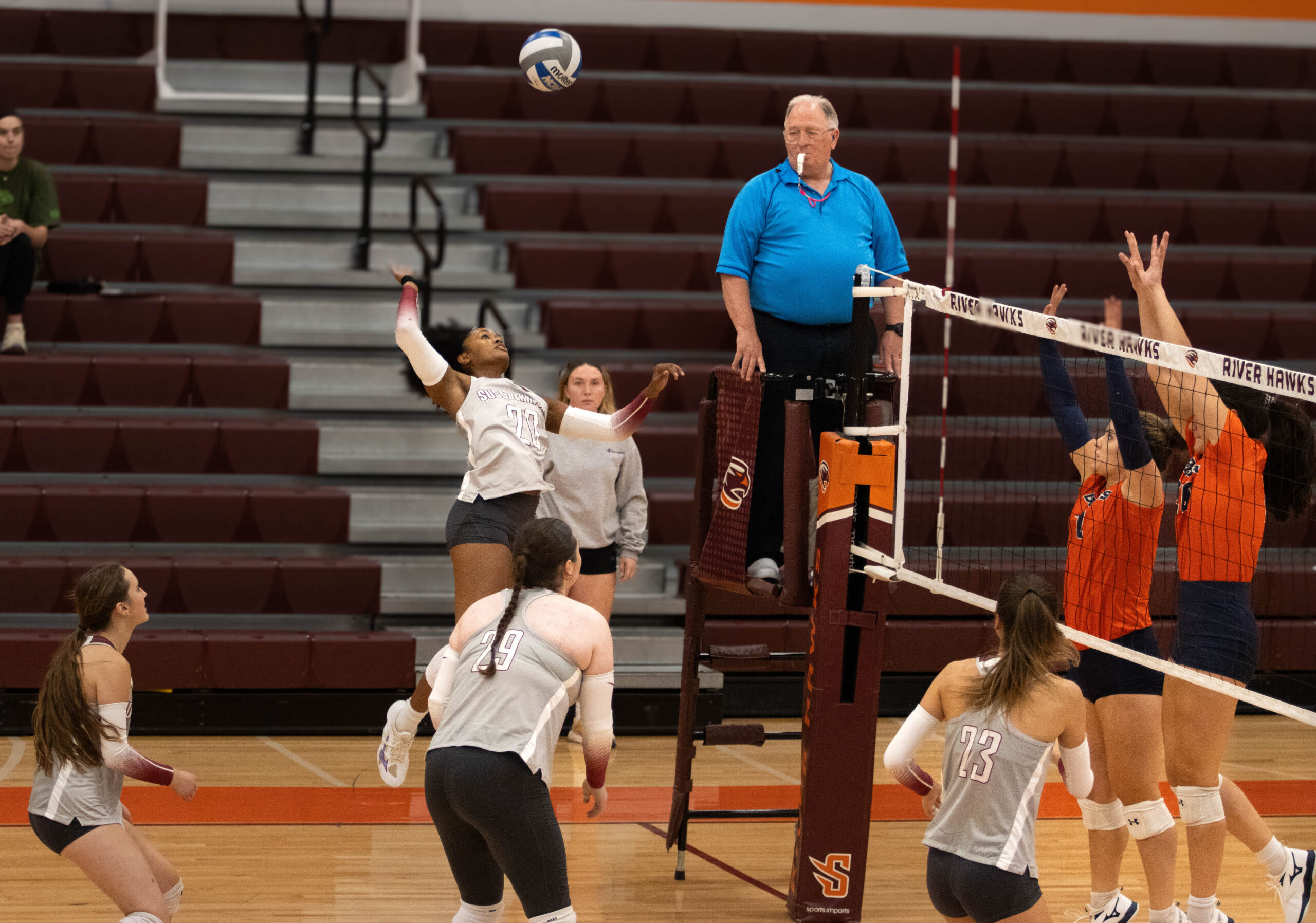 The mental errors were prominent in the loss for the River Hawks, as Susquehanna recorded 17 attack errors and five service errors.