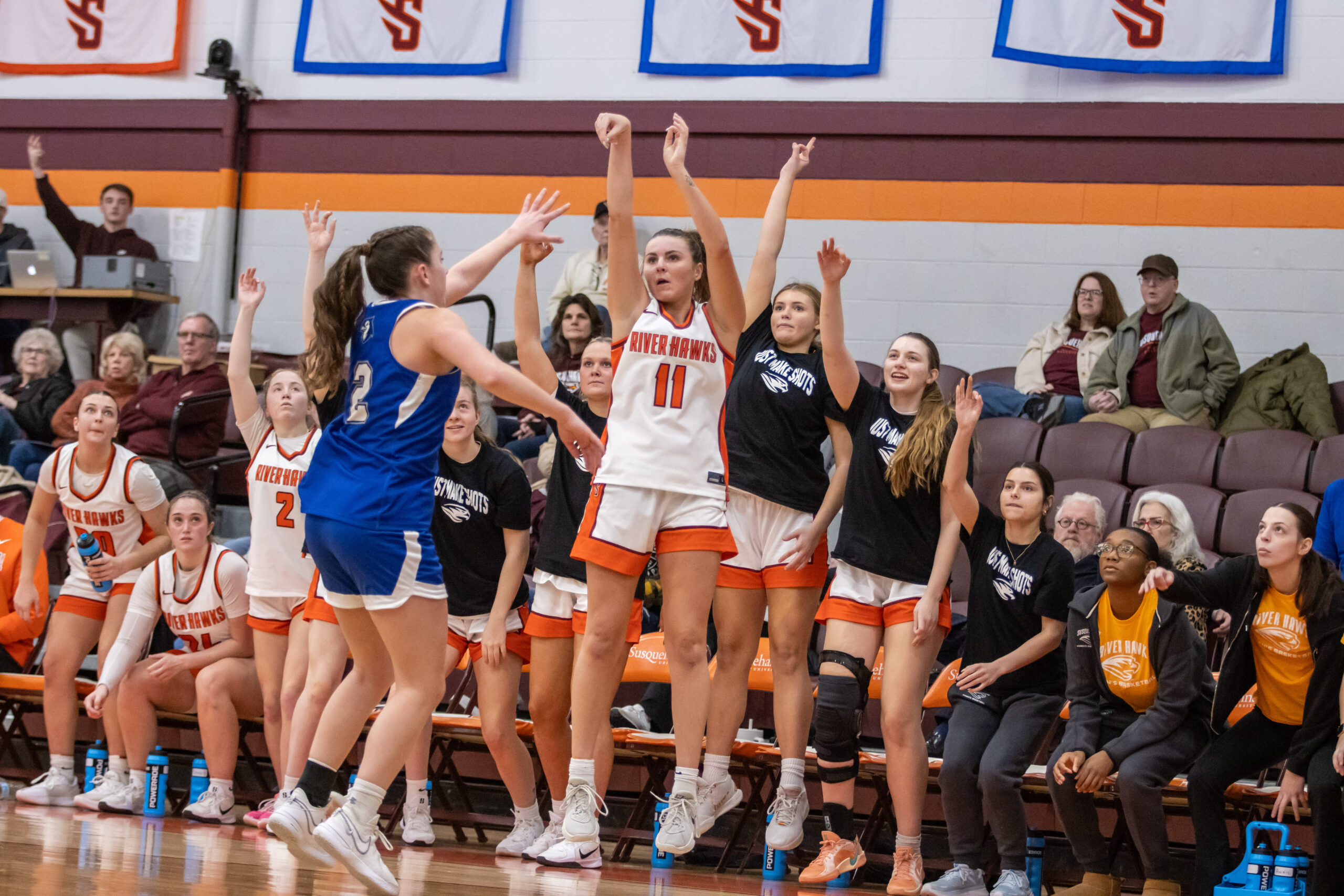 The River Hawks came out with heat every quarter, putting up points early and often. Susquehanna won the ball at the tip off, and Julia Roth sunk a pull-up jumper for the contest’s first points.