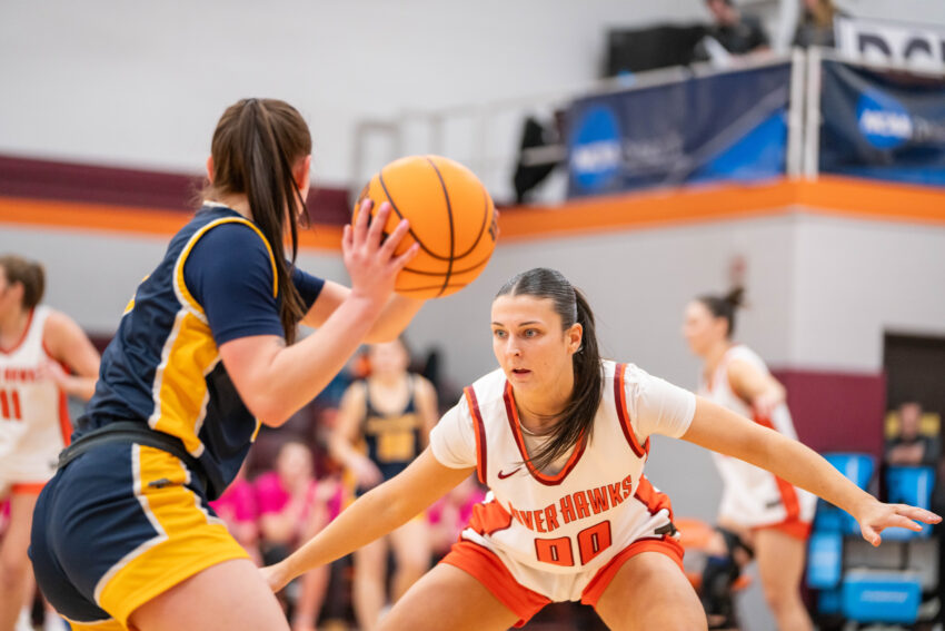 Senior forward Julia Roth was the lead scorer in the Riverhawks’ win with 21 points and 9 rebounds. Roth is very close to joining George in the 600 rebound club as she currently sits at 598.