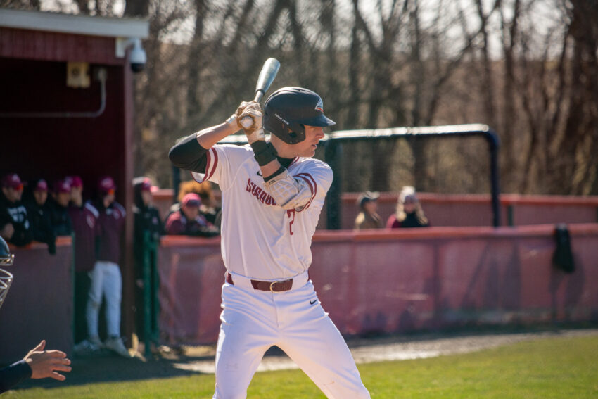 The River Hawks were the first to break through. In the bottom of the third inning, senior Dylan Heyduk worked his way on base and later came around to score when junior Paul Daly doubled to left field, putting Susquehanna in front 1–0.