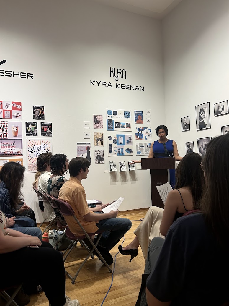 Finally, Dent introduced Creative Writing and Publishing and Editing double major, Emma Ritter. Dent pointed out Ritter’s dedication to several campus organizations, including her work as social media manager for the department.