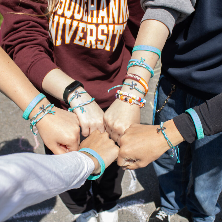 But Benny wasn’t the only helping hand during Teal Out Day, It’s On Us also partnered with women’s field hockey, men’s and women’s swim team, women’s volleyball, ultimate frisbee and the cheer team to help spread teal out into Susquehanna athletics.